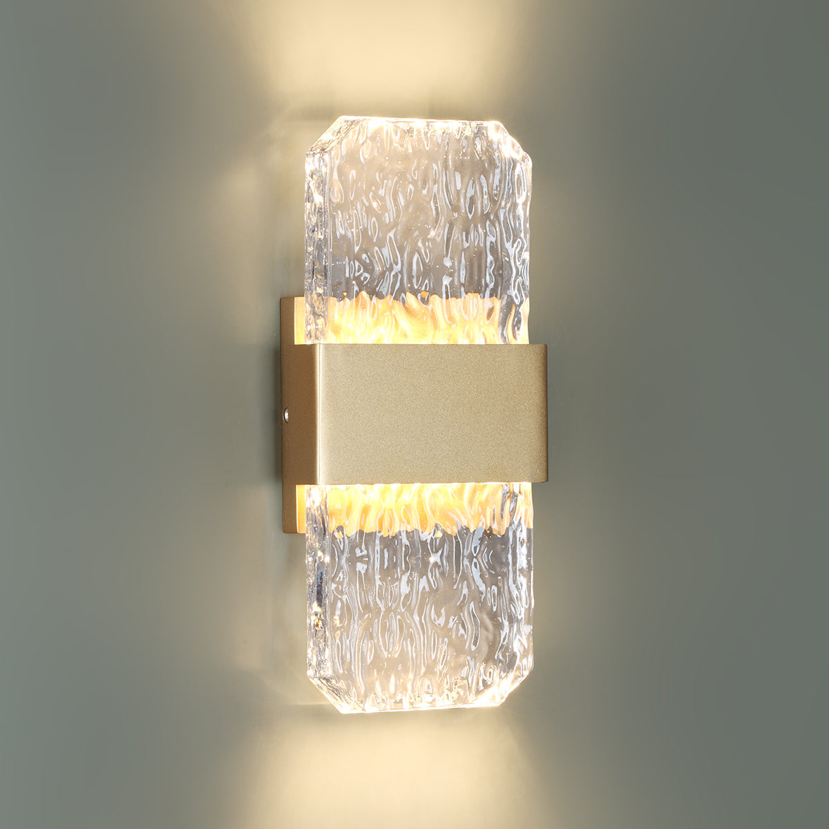 Marlow Small Gold with Textured Glass 2 Light Tri-Colour LED Contemporary Exterior