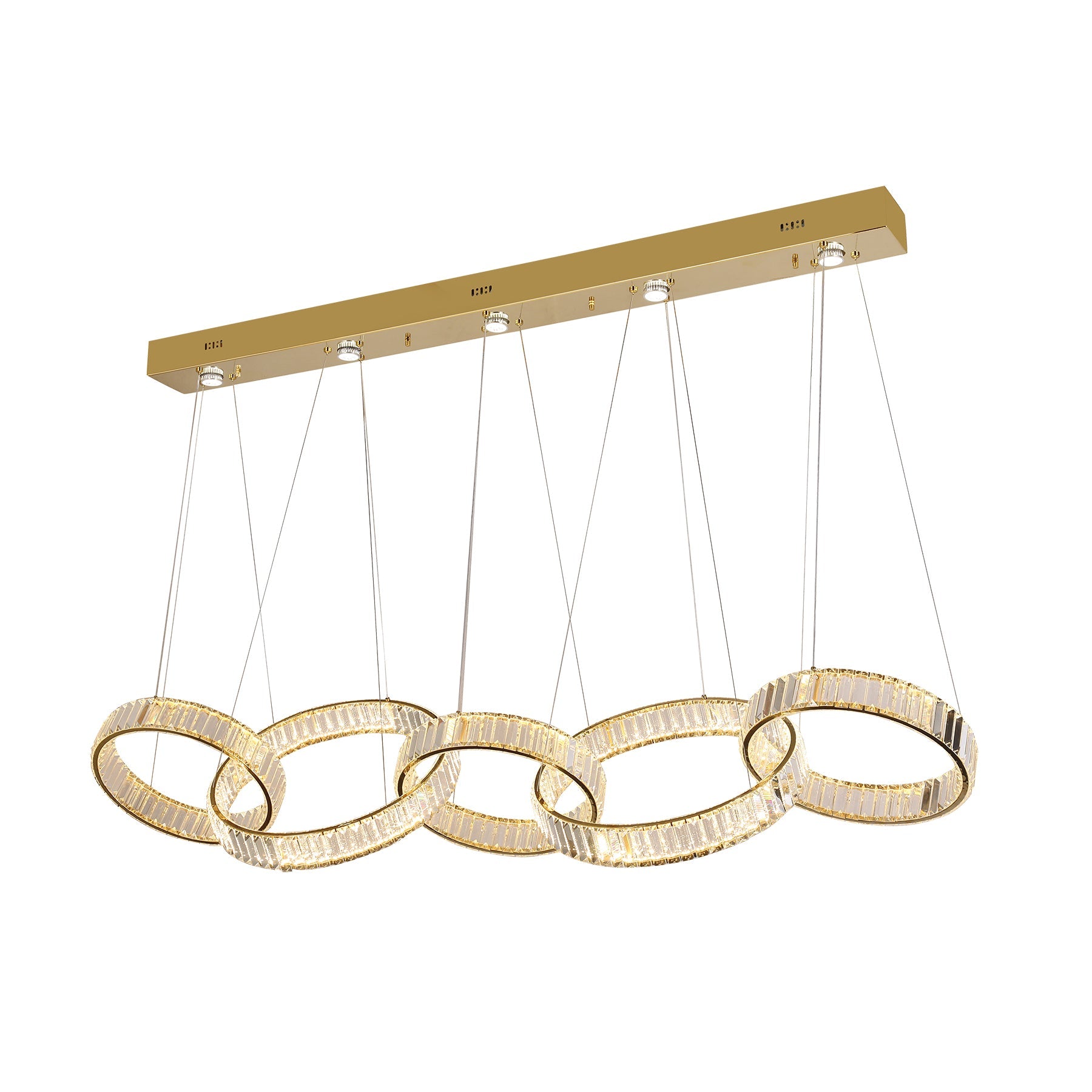 Parrini 5 Bar Gold with Crystal Remote Controlled Tri-Colour LED Pendant