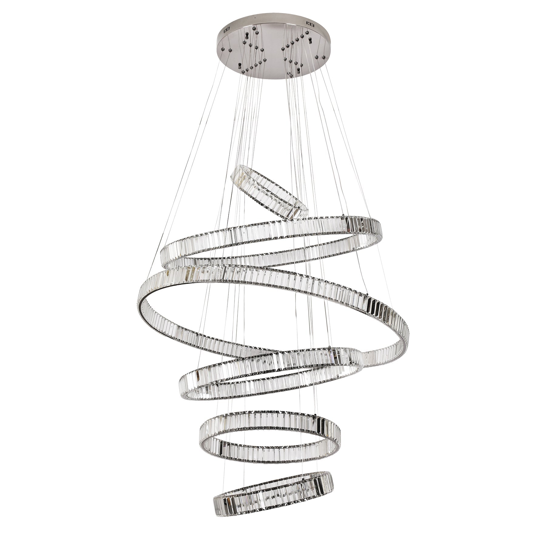 Parrini 6 Ring Gunmetal and Crystal Tri-Colour Remote Controlled Chandelier