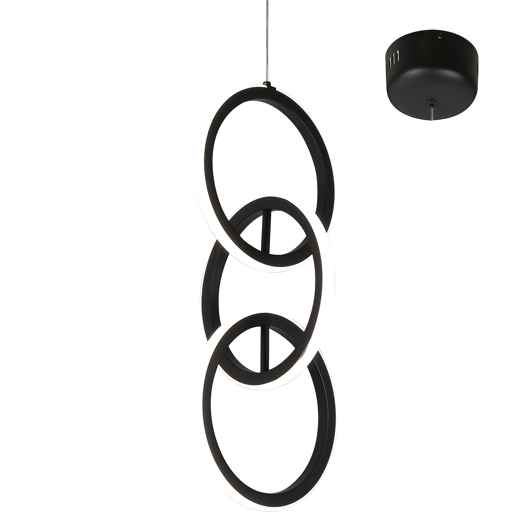 Vilaza Black 3 Ring Tri-Colour Remote-Controlled LED Contemporary Pendant